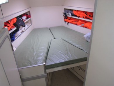 Equipment 1 Cabin, 1 Toilet, 1 Galley, Air-Cond., Radar, GPS, Electric Windlass, Refrigerator, Stove, Electric Crane, Dual Helm, Water Heater and Standard Equipment.