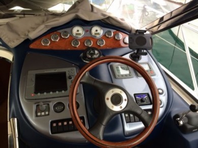 | Equipment | 2 Cabins, 2 Toilets, Galley, Air-Cond., Electric Windlass, Electric Close and Open Roof, Tender Garage, Bow Thruster, Refrigerator, Stove, Radar, GPS, Depth Sounder, Water Heater, Stereo and Standard Equipment. |